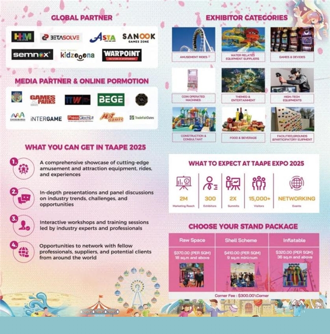 由中國動漫集團有限公司、泰國COMPASS集團、廣東鴻威會展集團聯合主辦的2025泰國文化用品、旅游裝備及景區游樂設施博覽會(TAAPE2025)是泰國知名游樂休閑類展會。該展會設立了水上裝備、游樂設施、戶外游樂、電子游樂設備等多個主題,展出內容豐富多樣,包括IP授權與合作展區、衍生品設計與制造展區、手辦與模型展區等多個展區。此次展會恰逢中泰建交50周年重要歷史時刻,依托泰國作為東盟樞紐的區位優勢,創新性地將傳統文化用品、旅游裝備與前沿元宇宙技術相結合,打造了全方位、多層次的文化貿易交流平臺。