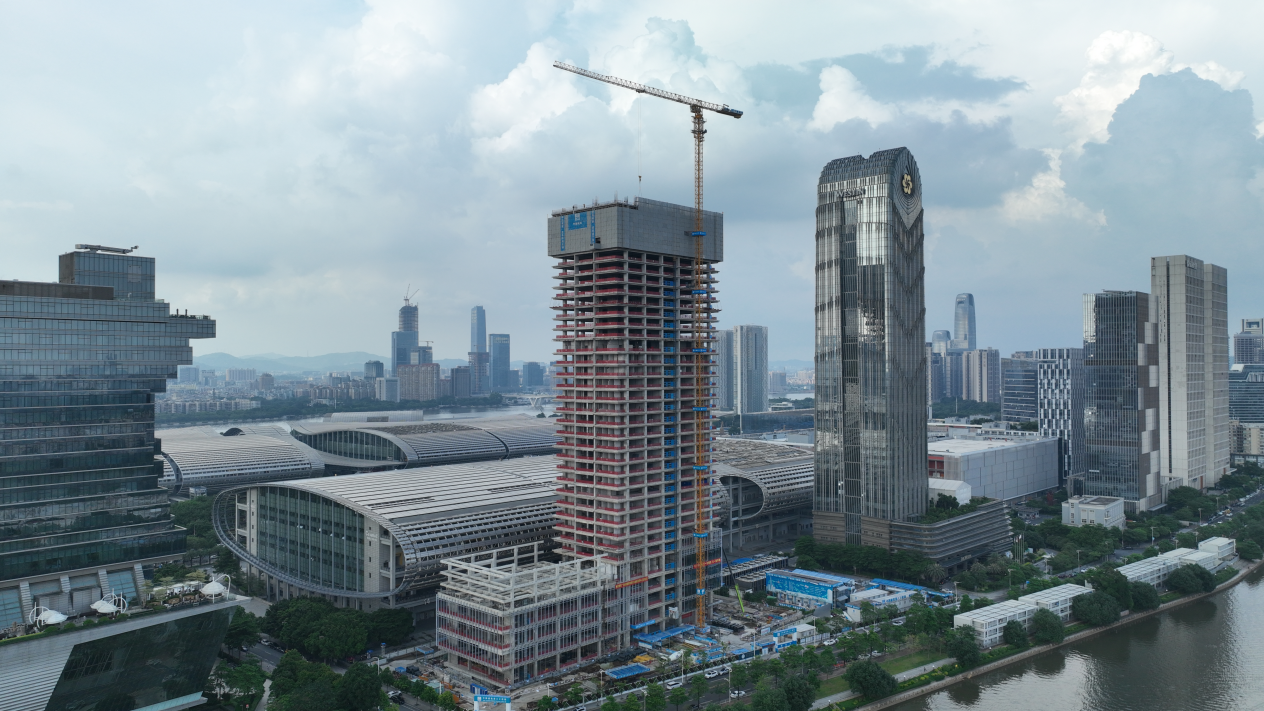 廣交會展館四期項目于2020年12月正式開工建設,是廣交會展館發展史上最大的擴建工程,包含D區展館、會議中心和指揮中心。指揮中心由1棟171.9米高的塔樓和4層裙樓組成,是集會議承接與日常辦公于一體的超高層建筑,既能滿足會展產業鏈個性化辦公需求,也可為會展活動提供高效便捷的會議服務。