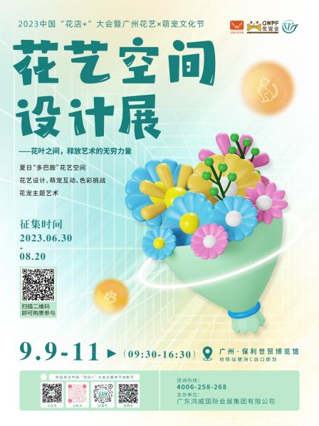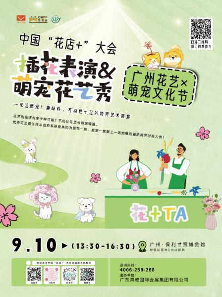 在“買花悅己”“精致生活”的潮流風向下,花店該如何讓自家的花藝產品在創意設計的賦能下更大程度地展現花植的自然美,產生更大的商業價值與市場競爭力?深入新消費營銷環境,洞察和掌握花藝設計新需求,為熱愛生活的花友們提供一個“美感爆棚”的花藝交流平臺,2023中國“花店+”大會暨廣州花藝×萌寵文化節將在9月9-11日在廣州·保利世貿博覽館舉行,涵蓋“插花表演+萌寵花藝秀+花植市集+花藝空間設計展”共四大特色板塊。