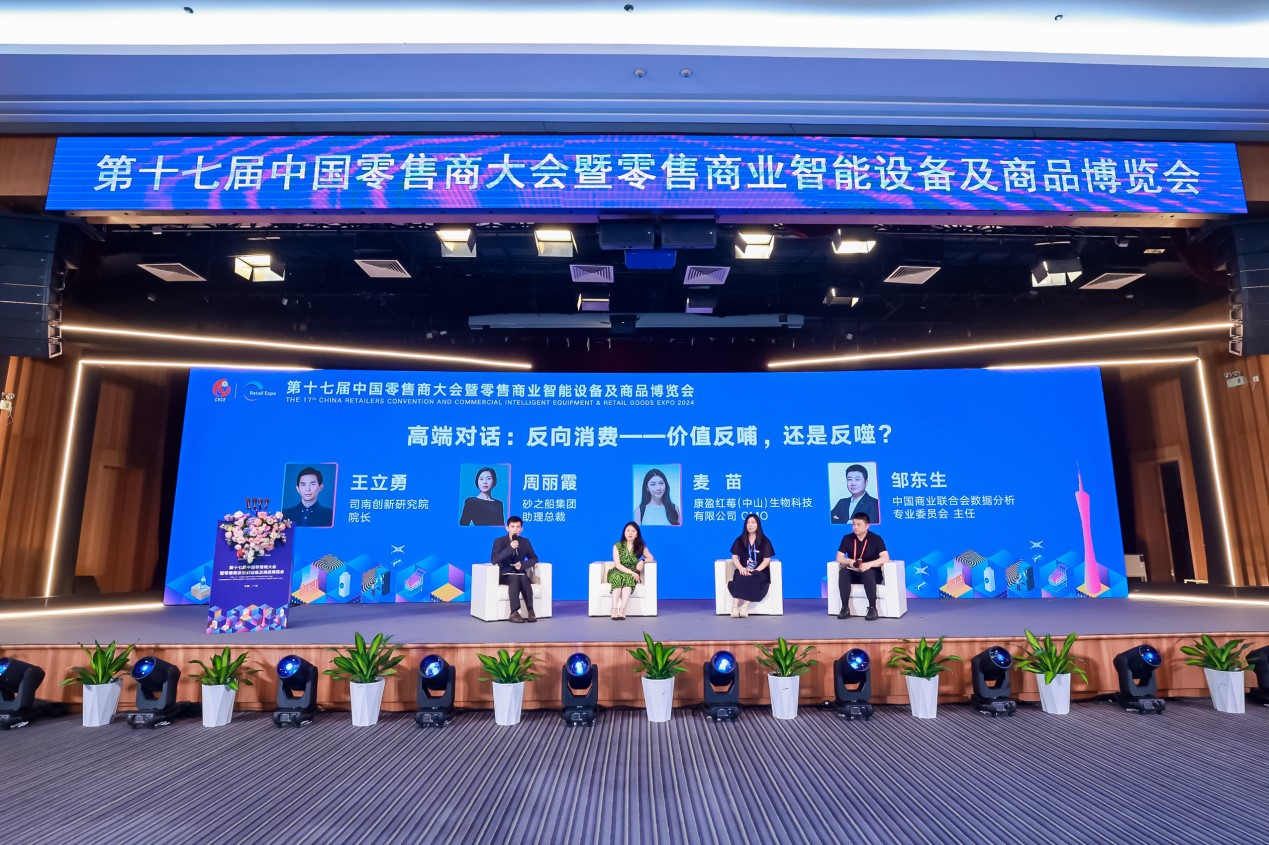 在高端對話環節,司南創新研究院院長王立勇、砂之船集團助理總裁兼分公司總經理周麗霞、康盈紅莓(中山)生物科技有限公司CMO麥苗、中國商業聯合會數據分析專業委員會主任鄒東生就“反向消費-價值反哺,還是反噬?”這一話題進行了深入討論,為與會者提供了獨特的視角和思考。